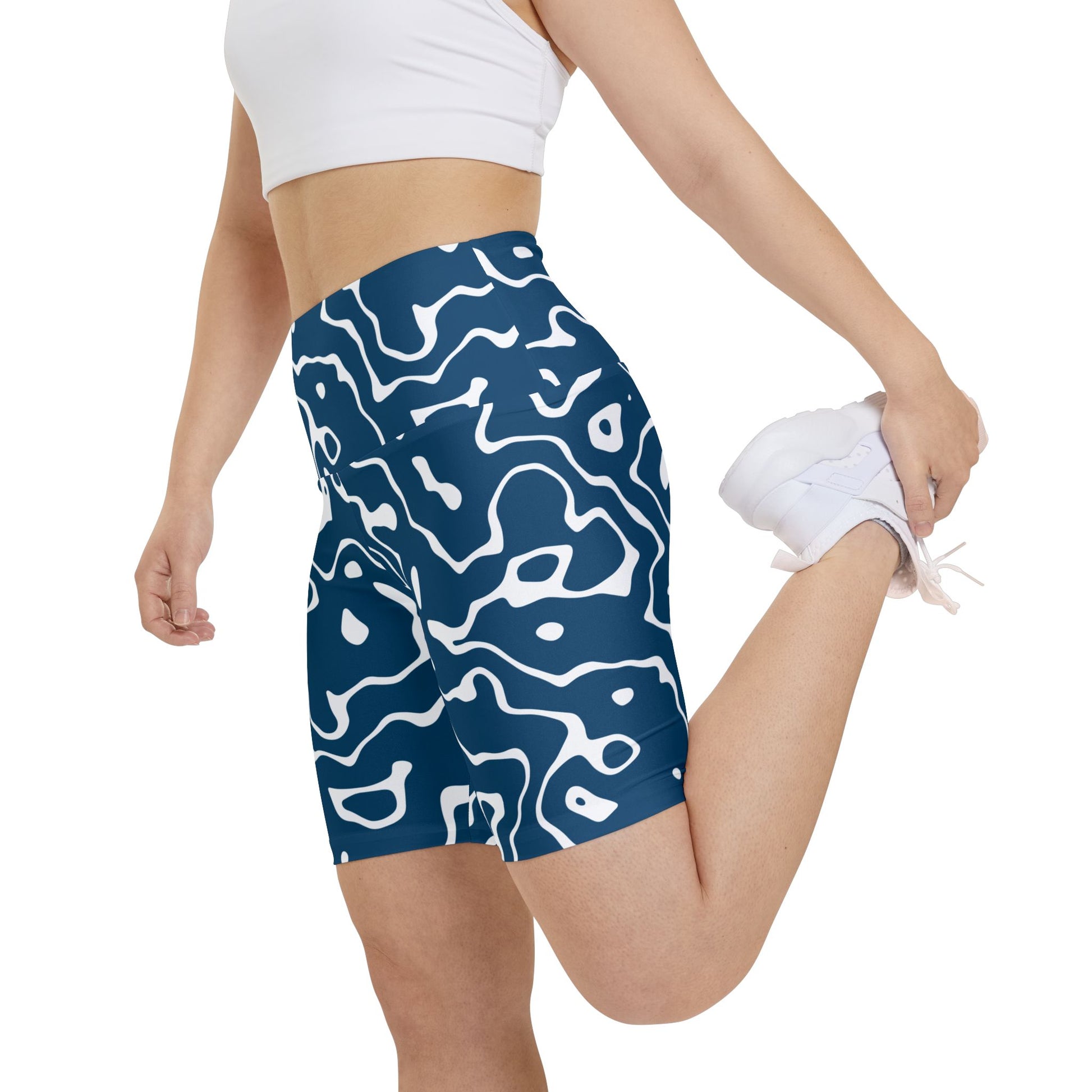 Take your workout to the next level with the Blue Fluid Motion Shorts. Designed with an eye-catching abstract water print, these shorts bring energy and confidence to every squat, stretch, or sprint. Crafted from durable polyester with a comfortable, body-hugging fit, they’re built for both performance and bold expression.