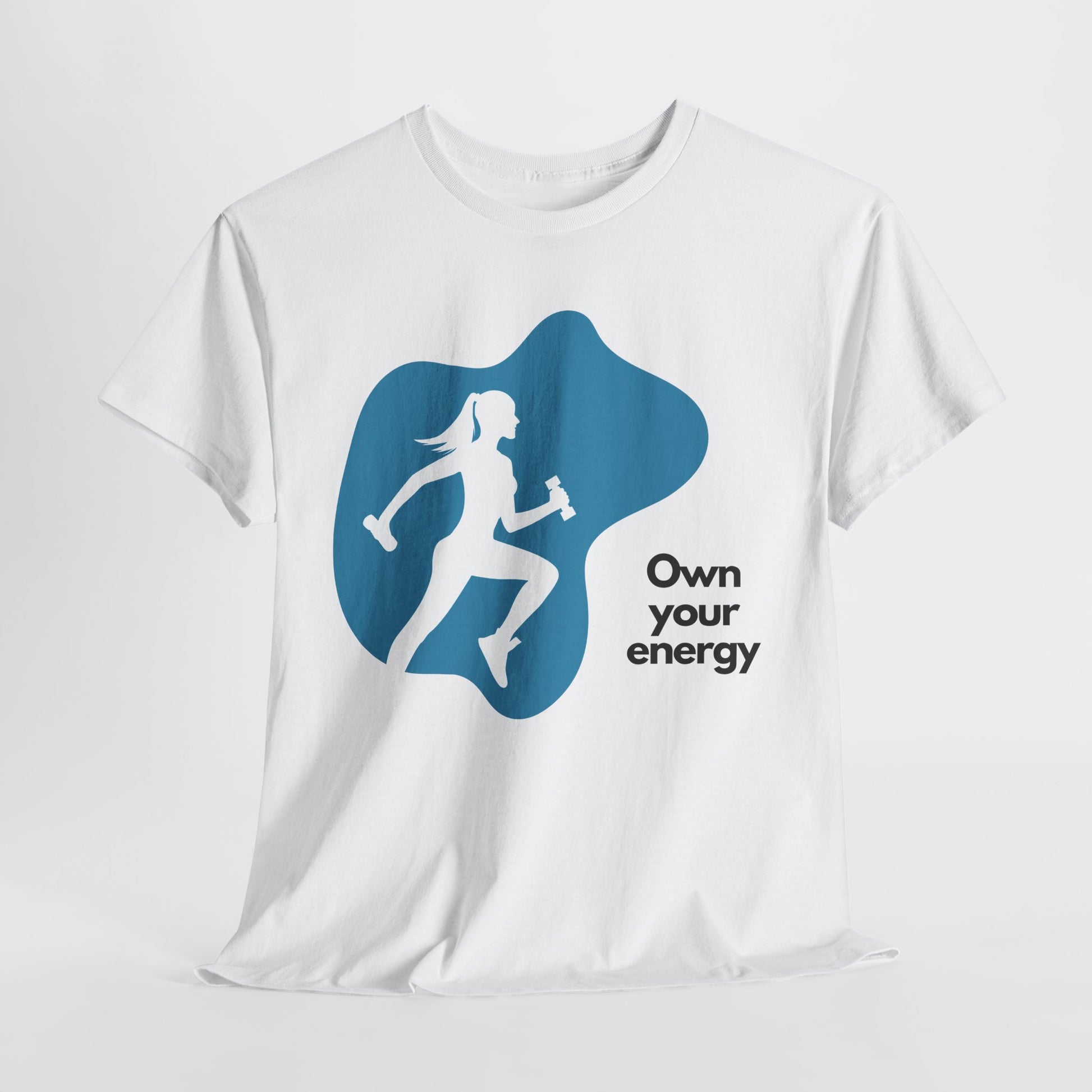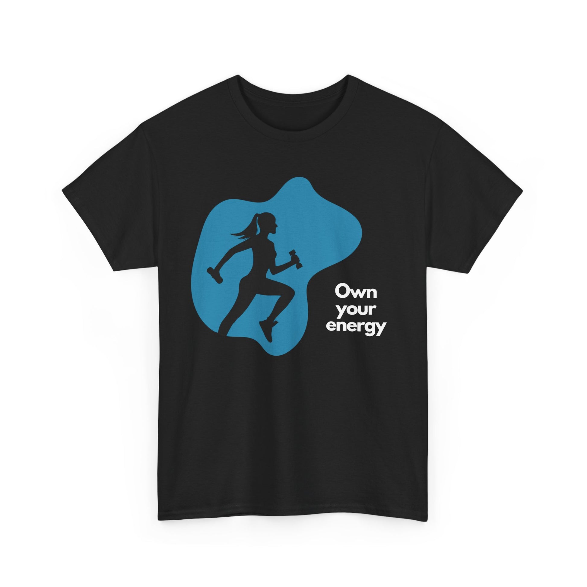 Make a bold statement in the Own Your Energy tee- where strength meets style. Featuring a sleek silhouette graphic and empowering message, this classic-fit shirt is crafted from 100% ethically sourced cotton for all-day comfort. Perfect for workouts, errands, or casual days when you want to move with purpose.